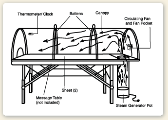 · After 20 minutes of steam therapy, cool-down process begins by opening zipper in canopy. (time varies with each clients tolerance)