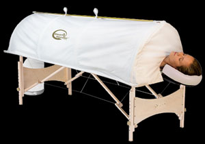 2. Your head will remain outside the canopy. A cold, moist towel will be completely around the neck and possibly the feet; especially if your are sensitive to heat.